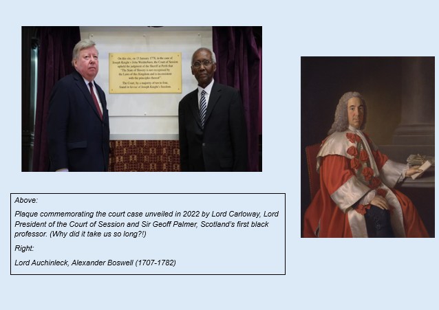 Lord Auchinleck (the father of the author, James Boswell) ruled in Joseph Knight’s favour with words that are relevant today: